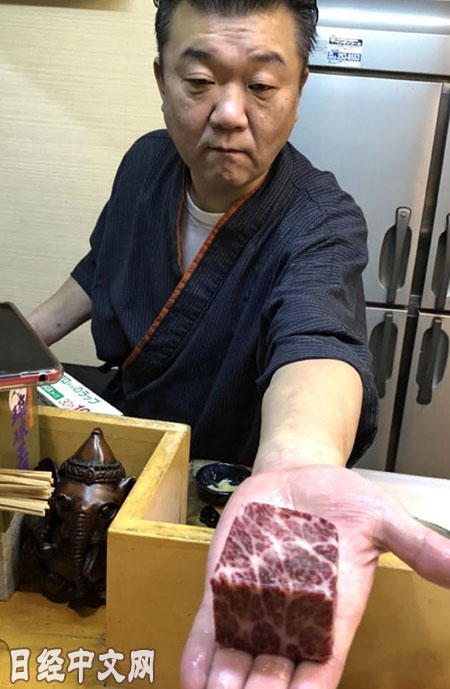 「這相當於鯨魚的‘大肥’(脂肪最多的部分),尾肉(onomi)」,1月下旬,在位於山口縣下關市的小料理店「Mutsu」,顧客們津津有味的吃著通過商業捕鯨捕獲的首批鯨肉,店裏熱鬧非凡。赤身(瘦肉)、鯨舌、牙床……該店以往就向顧客提供鯨肉,不過該店主廚金村睦德説,商業捕鯨後「味道明顯好吃了」。