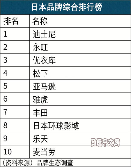 從各領域的排名來看,生活雜貨和日用品的首位是「無印良品」。第2位是「花王」,第3位是「戴森」。關於購物途徑,永旺排在首位,第2位是「亞馬遜」,第3位是「樂天」。丸之內品牌論壇的代表片平秀貴指出,「擁有自主的體驗平臺、或貼近客戶、使生活變得豐富的品牌表現突出」。