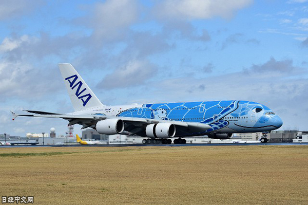 全日空5月向夏威夷航線投放的歐洲空中巴士超大型客機「A380」是全球最大的客機,共2層,總計 520個座位,是全日空在該航線上運作的其他客機的2倍。配備可以當床使用的沙發座椅、可以換衣服和哺乳的多功能區域等,以獲取家庭旅客的需求。