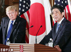 川普訪問日本與安倍會談,表現出日美「蜜月」關係,但在日美貿易均衡問題上,川普堅決不讓步,明確表示:必須減少對日本的貿易逆差……