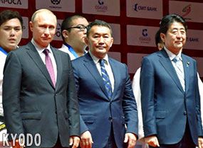 安倍向普丁贈送了日本講道館創始人嘉納治五郎的書作「精力善用」,普丁回贈的是……
