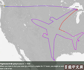 這架「787-8」從美國西雅圖的機場起飛,飛行18小時。波音的宣傳負責人承認,「測試團隊富有創造性地在美國22個州的上空飛出了自身的機體輪廓」……