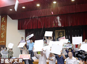 渾身濕透,高聲吶喊,互相投擲水氣球,這場「水球大戰」發生在7月19日的台灣立法院。投擲方是國民黨的議們,目標是民進黨蔡英文政權提出的大型基礎設施建設計劃……