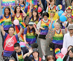 5月7日,同性戀和性別認同障礙者等性少數群體(LGBT)的當事者和支援者們在東京涉谷的街上舉行了遊行活動。參加者們身穿象徵LGBT的彩虹色服裝,高舉寫著「同性婚姻合法化」、「創造活出自我的社會」等的標語……