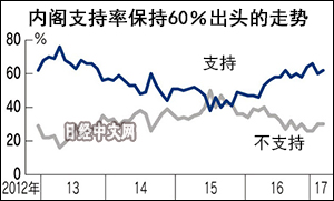 日本經濟新聞(中文版:日經中文網)等於3月24~26日實施了輿論調查。安倍內閣的支持率為62%,2月下旬上次調查為60%,基本持平……