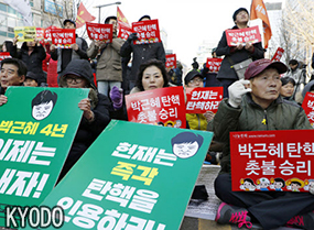 南韓憲法法院3月10日宣佈了對朴槿惠總統彈劾案的審判結果,認定彈劾屬正當,決定罷免其擔任的總統一職。在南韓憲政史上,總統因彈劾而遭罷免職務尚屬首次……