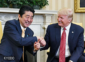 日本首相安倍晉三與美國總統川普在華盛頓舉行了首次首腦會談,並發表了聯合聲明……