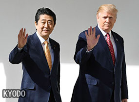 安倍晉三在白宮與川普進行了約100分鐘會談。雙方確認尖閣諸島(中國名:釣魚島)適用《日美安保條約》。安倍在會談後的聯合記者會上表示:將通過日美的領導能力在亞太建立自由公正的市場……