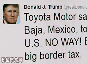 川普1月5日就豐田汽車計劃在墨西哥新建工廠計劃發推文稱:沒門!需支付高額關稅……