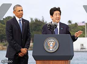 日本首相安倍晉三與美國總統歐巴馬27日上午(北京時間28日早)在珍珠港亞利桑那號紀念館獻花,悼念死難者。這是日本在職的首相第一次在亞利桑那號紀念館悼念……