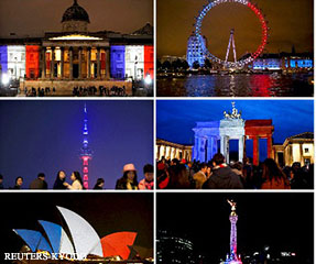 11月13日晚發生的巴黎連環恐怖襲擊事件震驚全球,為了表達哀思與聲援,包括中國上海的東方明珠在內,世界各地點亮了代表法國國旗的紅、白、藍三色燈……