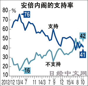 10月7日內閣改組後曾小幅回升,此次再次下降3個百分點。政黨支持率方面……