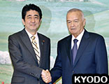 安倍指出「中國提出一帶一路構想,正在中亞積極推進基礎設施投資」後,卡里莫夫表示……