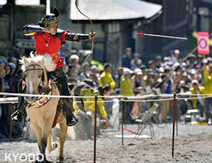 10月15日,日本栃木縣的日光東照宮內舉行了日本首次騎射大賽「Horse Back Archery」,共有來自13個國家的22名選手參加了比賽。 英國、蒙古等國的選手分別身穿本國傳統騎士服裝,在180米長的馬場上騎馬競技……