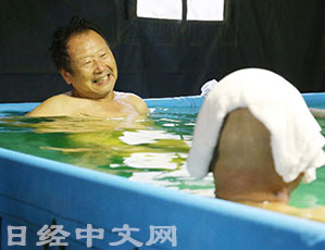 受18號颱風影響,日本關東地區連降暴雨,引發河堤決口,洪水氾濫。9月14日,日本陸上自衛隊在受災的茨城縣常總市水海道地區的一家公園內設置了臨時浴池,供受災民眾免費使用……