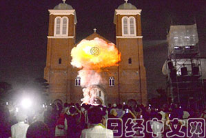 日本長崎市的浦上天主教堂曾在長崎原子彈爆炸中被毀。8月8日晚,在原址基礎上重建的新教堂牆壁上,以CG技術重現了70年前的一幕。在場的年輕人和天主教徒們沉浸在了對歷史悲劇的哀思中……