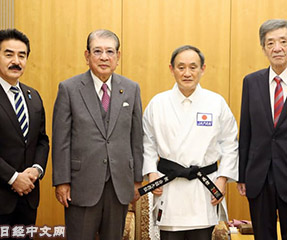 11月20日,日本首相菅義偉被全日本空手道聯盟授予名譽九段位。當天,菅義偉在首相官邸會見了該聯盟會長笹川堯,繫上寫有「九段」的黑帶並拍照留念……