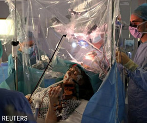 這臺手術在倫敦的國王學院醫院進行,實施手術的是一名身兼鋼琴師的外科醫生,而接受手術的是一位小提琴女演奏家。她邊演奏小提琴邊接受腦部腫瘤切除,3天後出院,並重啟演奏活動……