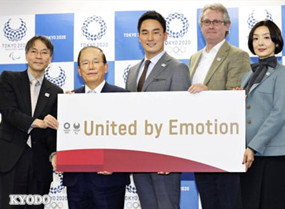 日語為「感動で、私たちは一つになる」(感動讓我們成為一體)。想要表達的含義是,希望人們因感動而相聚,並能以此為契機超越國籍、宗教、差異等障礙,建立起一個互相融合的共生社會……