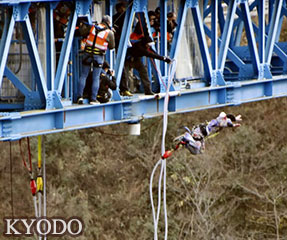 在日本茨城縣常陸太田市的龍神大吊橋,新成年人1月11日挑戰了被認為是日本第一高度的高空彈跳(約100米)。公司職員富岡明惠(20歲)喊出自己的願望「希望今後繼續做自己喜歡的工作」,穿著長袖和服跳了下去……