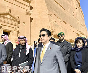 安倍到訪的是於2008年成為沙烏地阿拉伯第一個被列入世界遺産名錄的遺産的古代遺址「瑪甸·沙勒」。參觀後安倍對記者表示「感受到沙烏地阿拉伯守護古代文明的傳統和文化」……