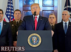 川普稱:對於伊朗在中東地區的破壞性、破壞穩定的行為,各國容忍已久。那種日子已經結束…