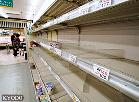 「來買桶裝麵,但沒貨了」,一名家庭主婦望著空空的貨架大失所望。東京一家超市裏,桶裝麵、罐頭、飲用水商品基本售罄。在部分羅森便利店,10日手電筒的銷售額增至前一週的42倍……