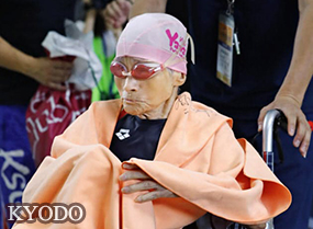 在「2019日本大師賽」上,105歲的長岡三重子出場參賽,挑戰長池女子50米仰泳。日本大師賽游泳協會表示,這是在國際泳聯有認證記錄的日本國內大賽中最高齡的出場者……