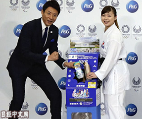 2020年東京奧運會和殘奧會組織委員會與寶鹼召開記者會,宣佈了使用廢舊塑膠製作領獎臺的計劃,呼籲人們對19日在日本各地啟動的廢舊洗滌劑瓶及洗髮精瓶回收活動予以支援和配合……