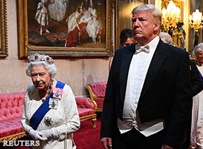 川普2018年訪英時做出走在女王前面等失禮行為,本次則沒有重大禮節失誤……