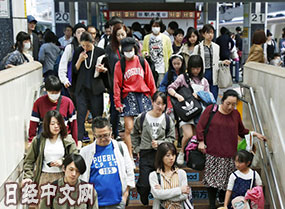 5日日本各地的高速公路和鐵路迎來了返城高峰。高速公路的上行方向出現了擁堵,新幹線也從上午開始持續擁擠……