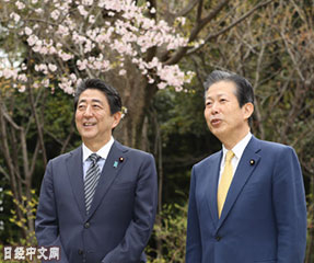安倍3月28日與日本公明黨黨魁山口那津男一同散步,觀賞了櫻花。安倍表示,「希望打造像今日盛開的櫻花一樣,大家的夢想和希望都綻放的時代」……
