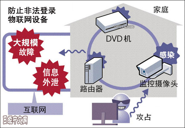 物聯網將街頭巷尾的監控攝影機和家庭的家電等龐大的設備通過網際網路連接起來,駭客攻佔任意1台設備,就可能導致病毒擴散……
