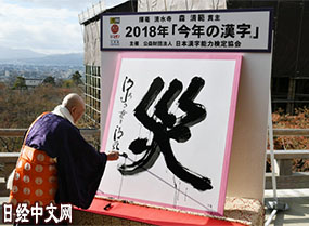 12月12日,日本選出了2018年度漢字「災」。安倍對此表示,「將全力推進災後復興工作,使大家能夠早日回歸安穩的生活」。同時,安倍也選出了自己心中的年度漢字……