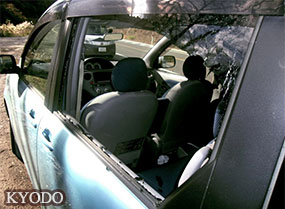 車窗受擊破碎,車內人員未受傷,但表示「如果稍偏一點可能就打中我了」。警方和自衛隊認為擊中汽車的是炮彈碎片或瀝青碎片……