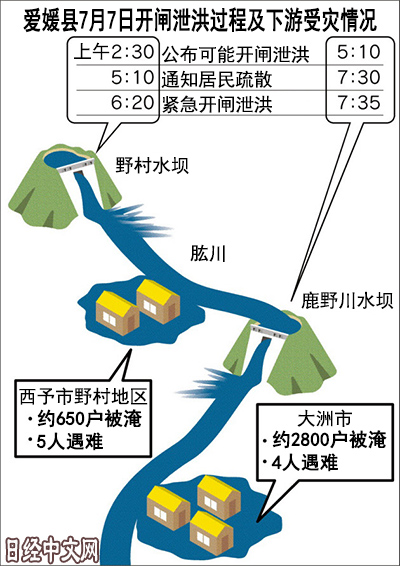 創紀錄的大暴雨襲擊了日本西部,愛媛縣內的2處堤壩在放水後導致下游河流氾濫,造成居民共9人遇難……