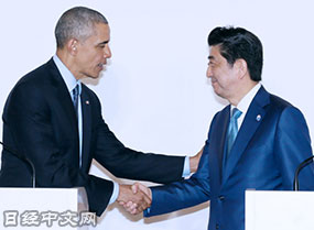 在G7峰會開幕之前,美國總統歐巴馬與日本首相安倍舉行了長約1小時的會談。安倍稱雙方就G7必須積極拉動世界持續且強有力的增長達成了一致,還提及南海問題……