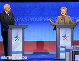 美國民主黨19日舉行總統參選人辯論。希拉蕊與在新罕布希爾州佔據微弱優勢的桑德斯展開論戰