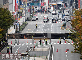 日本福岡市中心發生大規模道路塌陷