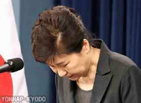 朴槿惠4日圍繞密友干政嫌疑向國民發表講話,她低頭道歉稱:希望坦率地承認錯誤,祈求各位國民原諒……