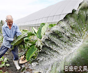 10月8日,熊本縣阿蘇山猛烈噴發,大範圍的農田內落下了火山灰和火山石。很多塑膠大棚被砸出洞,火山灰堆積在作物表面。看到可能枯萎的草莓和高麗菜,很多七八十歲的農民們嘆息不已……