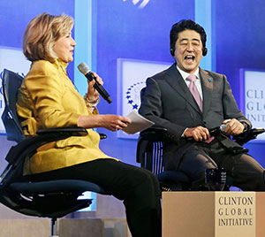 | 安倍和希拉蕊在活動現場談笑風生(KYODO) |