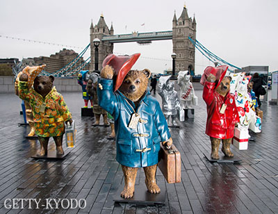 | 英國倫敦某處擺放的「帕丁頓熊」像(GETTY-KYODO) |