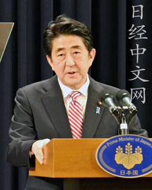| 日本首相安倍11日在北京市內舉行記者會 |