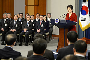 | 在總統府舉行記者會的南韓總統朴槿惠(12日、YONHAP-KYODO) |