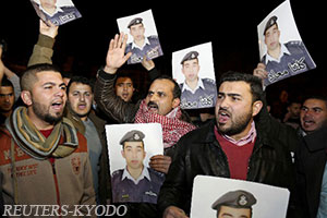 | 約旦民眾手舉該國飛行員的照片要求政府優先營救 |