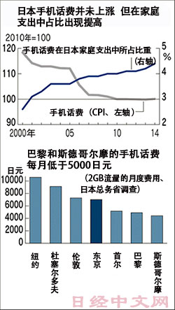 被安倍和菅義偉視為問題的是手機話費在日本家庭支出中所佔比重。日本總務省的家庭支出調查顯示,2人以上的日本家庭的消費支出中,手機話費所佔比重在2004年為3.6%,而到智慧手機趨於普及的2014年則增長至4.4%,增長了約20%。