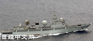 | 在尖閣諸島(中國名:釣魚島)以南航行的中國海軍情報收集艦=日本防衛省提供 |