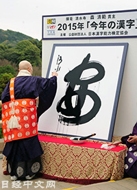 | 清水寺住持森清範揮筆寫下2015日本年度漢字「安」(15日) |