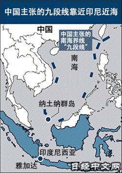 中國主張對南海擁有權益的邊界線——「九段線」臨近印尼近海。對此,印尼治安與法律統籌部長魯胡特曾在最近表示,「九段線」侵犯了納土納群島海域的專屬經濟區,缺乏國際法上的依據。